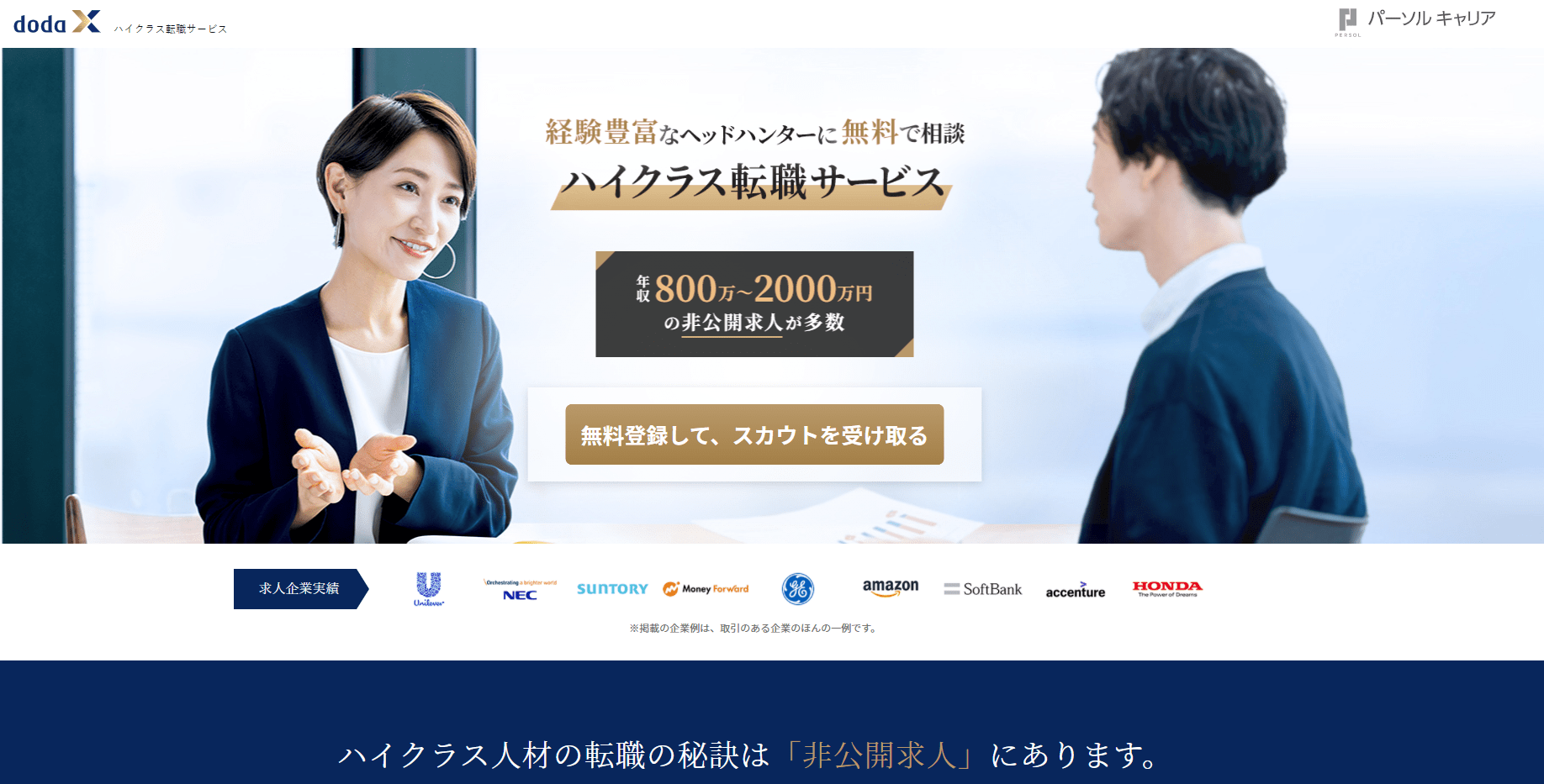 doda Xは、パーソルキャリアが運営するハイクラス向けの転職サービスです。